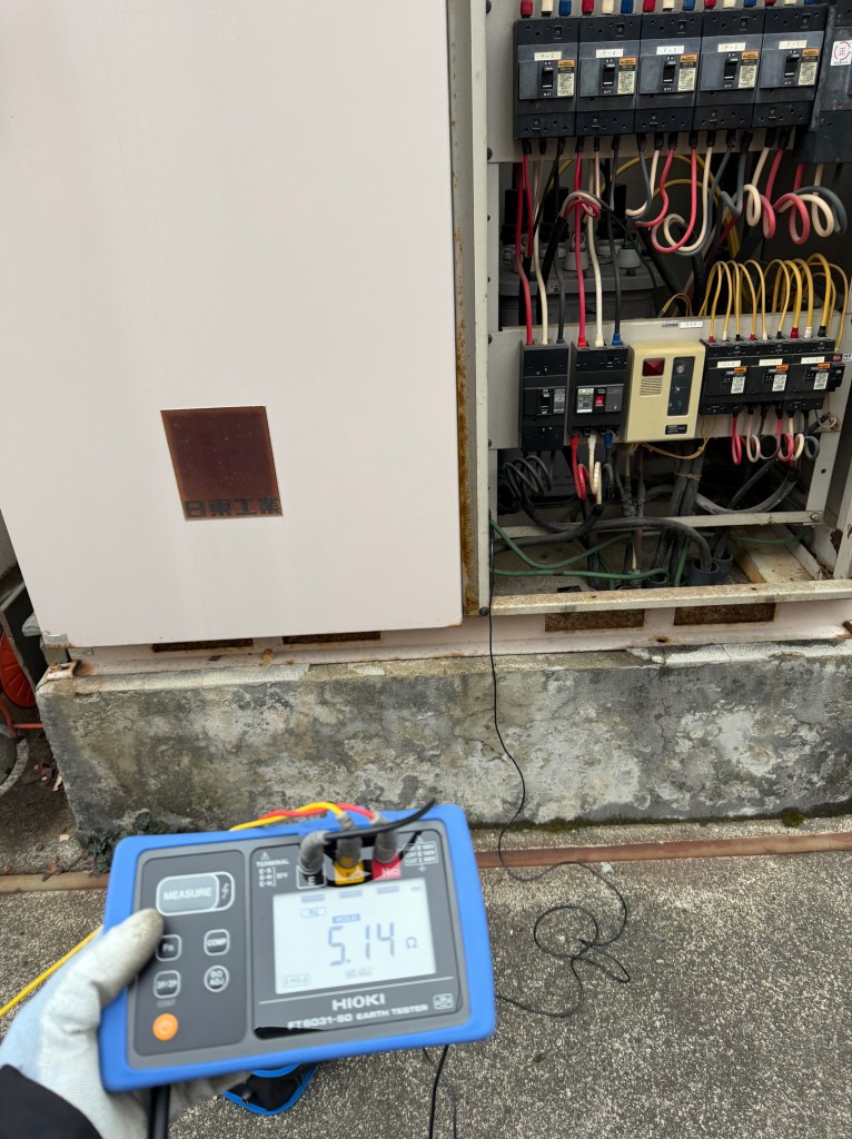 接地抵抗測定をはじめ、各種機器の点検および清掃を行い、設備全体の状態を確認しております。