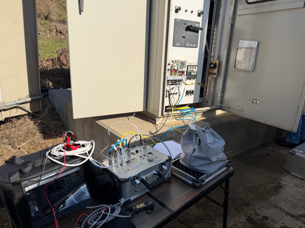 当日は、保護継電器試験および連動試験を実施し、各機器が正常に動作することを確認しました。