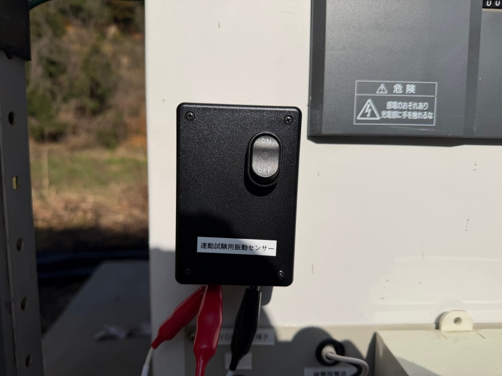 連動試験では、作業効率の向上を目的として自作の振動センサーを使用しています。これにより、試験時の操作性を高めるとともに、スムーズかつ確実な動作確認が可能となりました。